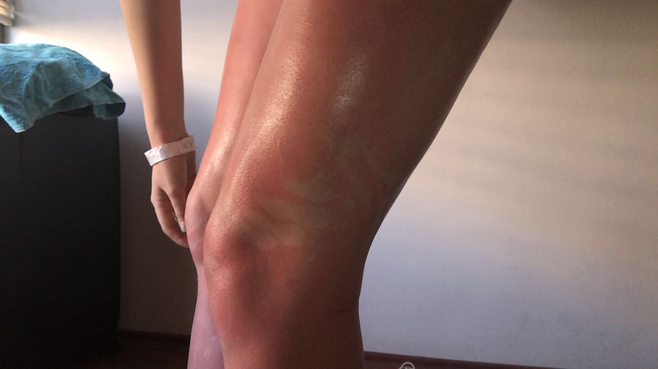 - Sunburn from Hell After a rough entrance, I decide to explore more of the country by going to ValparaĆso for the weekend with a beach day at ViƱa. With my two new friends, we lay out on the beach; I’m by far the palest person in sight. Despite having a skin doctor for a mother and years of experience with awful sunburns, the sun doesnāt feel so strong. So I apply sunscreen to my face shoulders and arms, and, to my most painful regret rub, the left over smear of sunblock on my legs. After a couple of hours in the sun, we decide to get lunch when I begin to feel the a burning sensation over my legs. By the time were back at the hostel, I learn about the thin ozone layers in Chile and my legs have completely transformed into lobster, with some delicate white designs of hand prints, where I so charmingly put my left over sunscreen. The pain is incredible, but I decide to explore the night life, only to find myself hours later in a hostel lobby with a sunburn fever and radiating pain running through my body. After my return to Santiago, I had the pleasure of wearing pants during the hottest months of the summer to protect my legs from the sun, and embarrassment from my tie dyed legs.